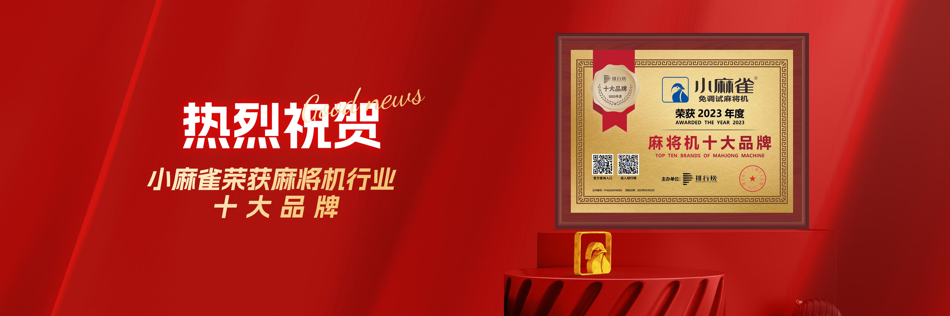 小麻雀榮獲十大品牌,2023年度麻將機(jī)行業(yè)排行榜揭曉!